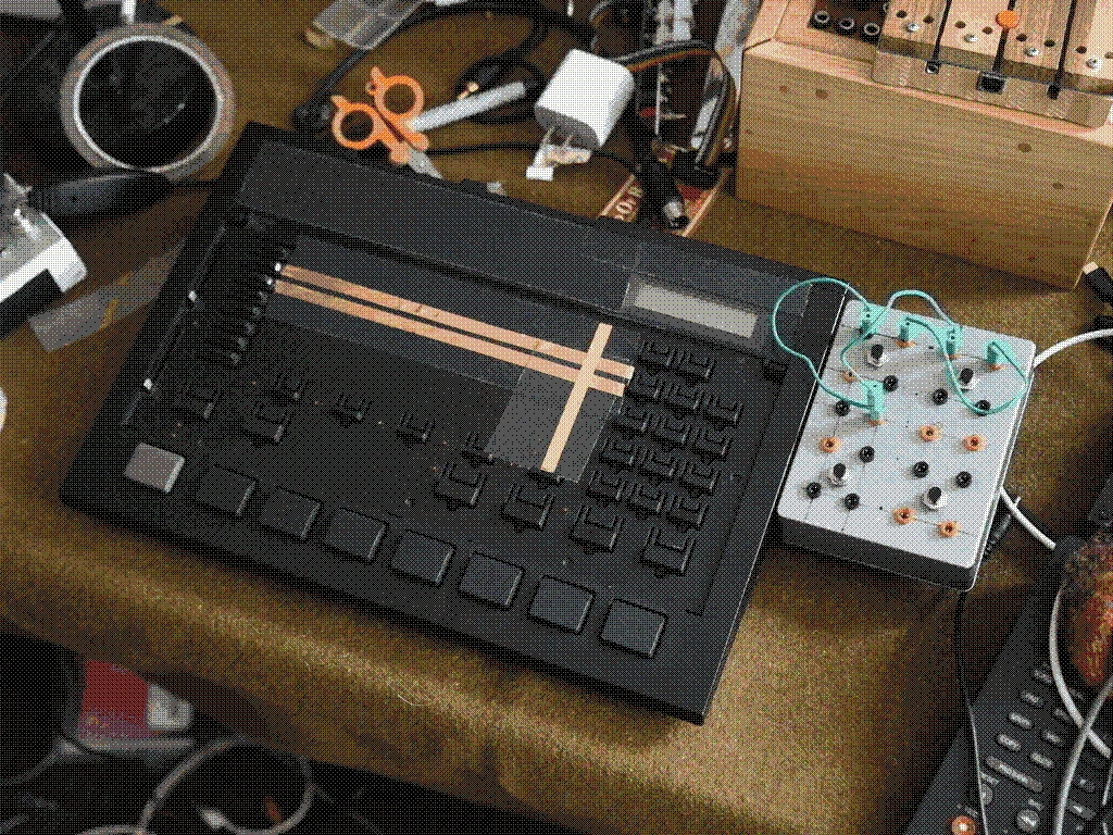 Circuit bent Korg DDD-5 Drum Machine with 2mm Banana jack patch points and 4 toggle buttons