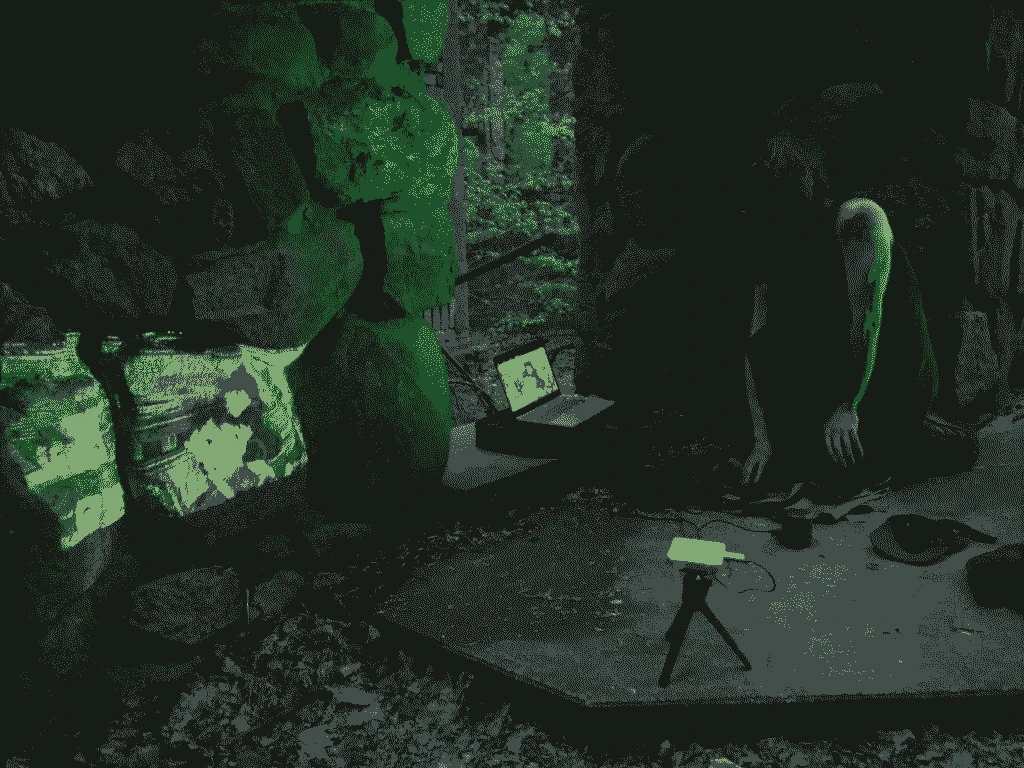 Enzo did too much acid and now he sees these faces in the static when looking out of dark windows at night.