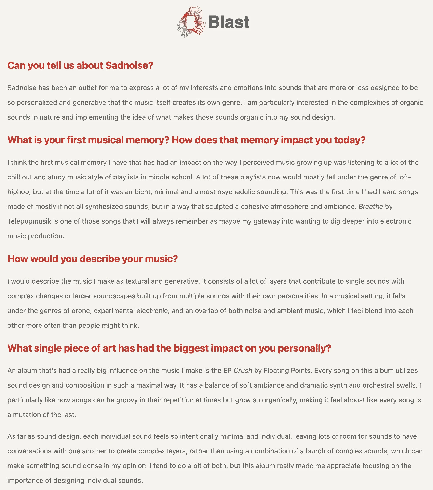 I'm drawn to this form of experimenting with audio in this project in particular because as a concept, it's related to nature, generation and generativeness, an initial state of being, and evolution over time.