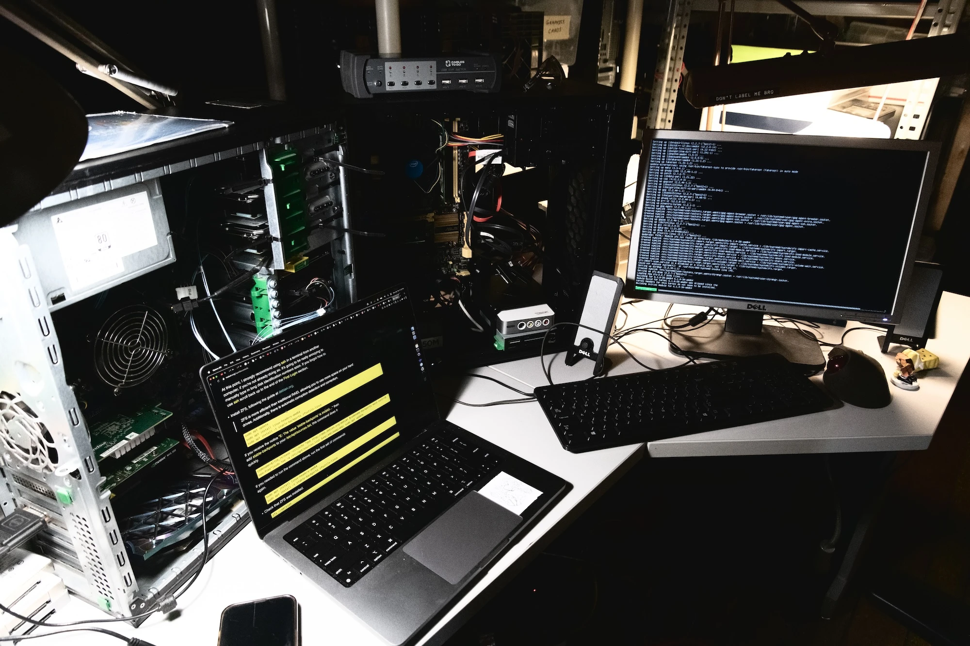 Today I made a lot of progress on my personal server! Grief found this old tower computer for me in the RISD E-Waste pile alongside a bunch of old mac laptops and other desktop towers. We gutted it and put in a new graphics card and 5 4tb hard drives, and a ssd to boot from. The server is running linux debian, with no desktop. It's set up in a Raid array. Today we got it hooked up to a network so that i could start uploading files to the server via rsync on the same ip. We had some trouble finding a good 3d print file for the hard drive holder but we just ended up zip-tieing it and it was fine. I used Grief's spellbook to set up most of the raid array and figure out file transferring as we updated it. The 4tb external ssd that had my entire life of files on it was wrapped in gaffer tape along eith 3 other external hard drives, so I had them all in one place. We ripped these apart, in an attempt to extract the ssd from the enclosure for faster transfer times, but the enclosure was too tightly closed, and it seemed as though it would not be one of the drives that would allow us to separate the ssd.