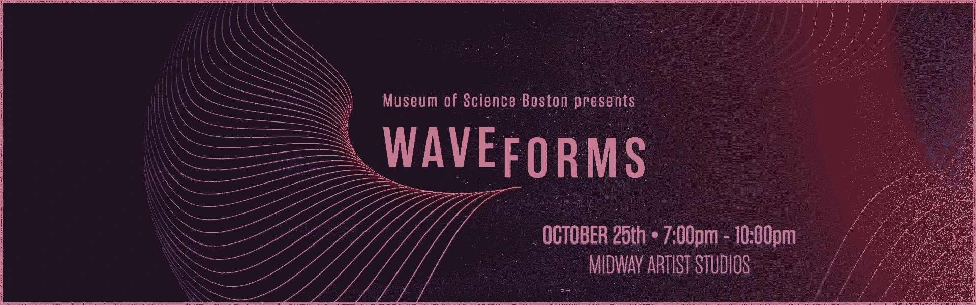 WaveForms returned after its successful inaugural year to present a multimedia art occurrence at Midway Artist Studios in Fort Point Boston. Presented by Museum of Science Boston the event featured installation artwork, audio visual performance, spatial sound, experimental animation and video screenings. For one night, Midway Artist Studios was alight with an array of artwork activations featuring regional artists from Boston and beyond. Museum of Science Boston is partnering with a unique cohort of organizations to bring the event to life