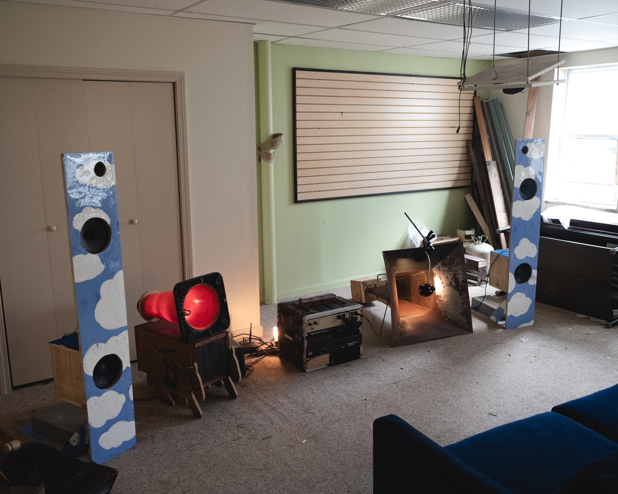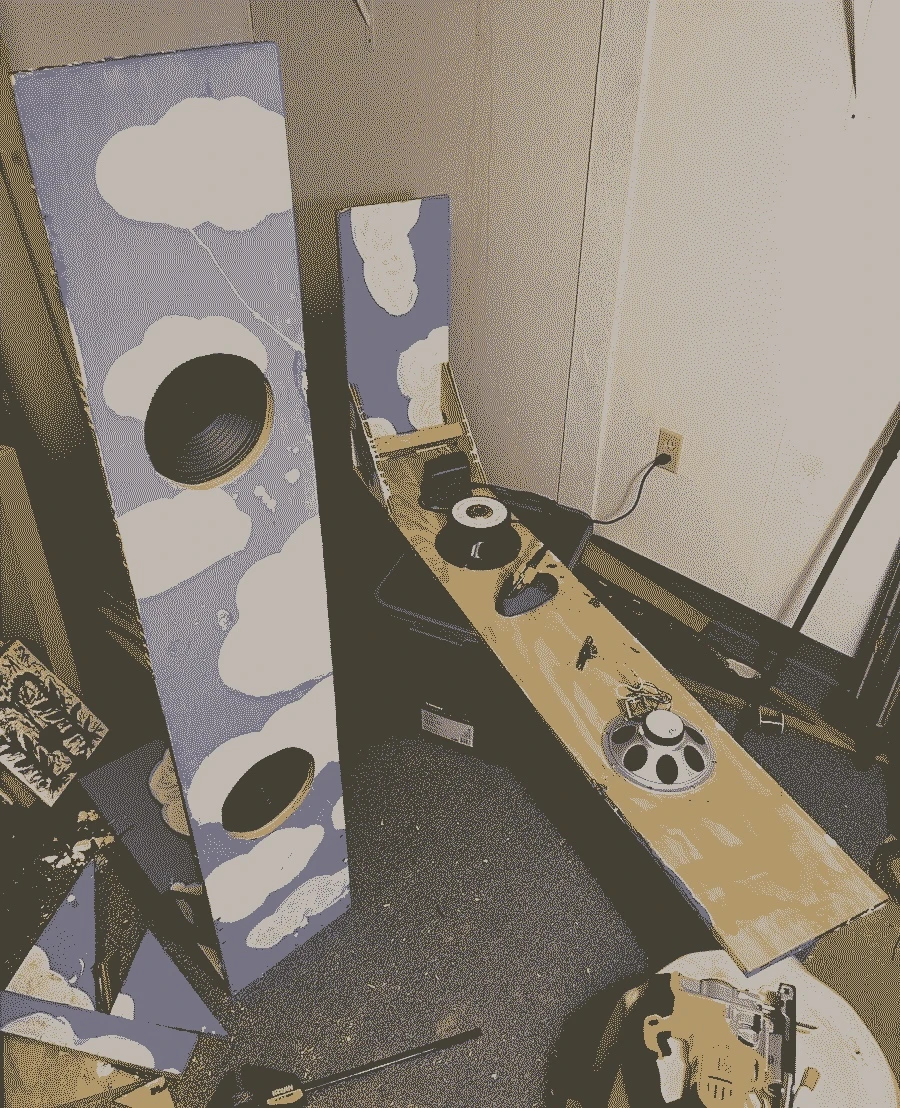 Right now I'm building these hifi open baffle hybrid speakers from sub drivers that Hoolihan dropped off at the studio, mid range Page drivers that were used at PA speakers in the ceilings at my studio probably in the offices that occupied the space in the 90s and early 2000s, and tweeters Eli harvested from some studio monitors. This is my first HiFi Build and I'm doing it right, trying to build a nice crossover and everything, I was quad amping it for a while, using my modular to make crossover filters before the amp. The page drivers are open baffle and the BASS (bad ass serious sub) drivers are in a closed box, with no port. Matt Azevedo is helping me do the calculations, I need a windows computer to run Hornresp and RoomEQWizard. And i need to order some more parts for the crossover, but I've harvested some power caps and inductors from old speaker cabinets in the basement of the Firehouse. I'm learning a lot about crossover design and speaker impedance. The page drivers had transformers on the back of them that made me think that they would be a super high impedance but they ended up just being 8ohms. I have been looking at a lot of Japan HiFi Audio listening rooms with crazy compression drivers for the whole system, connected to these insane sculptural horns that spiral the house into the attic to make the length of the horn for bass response and I want to build something like that for my architecture thesis.