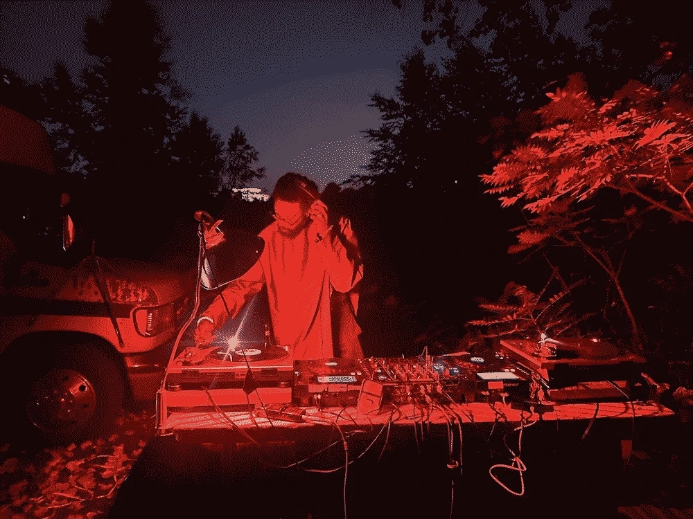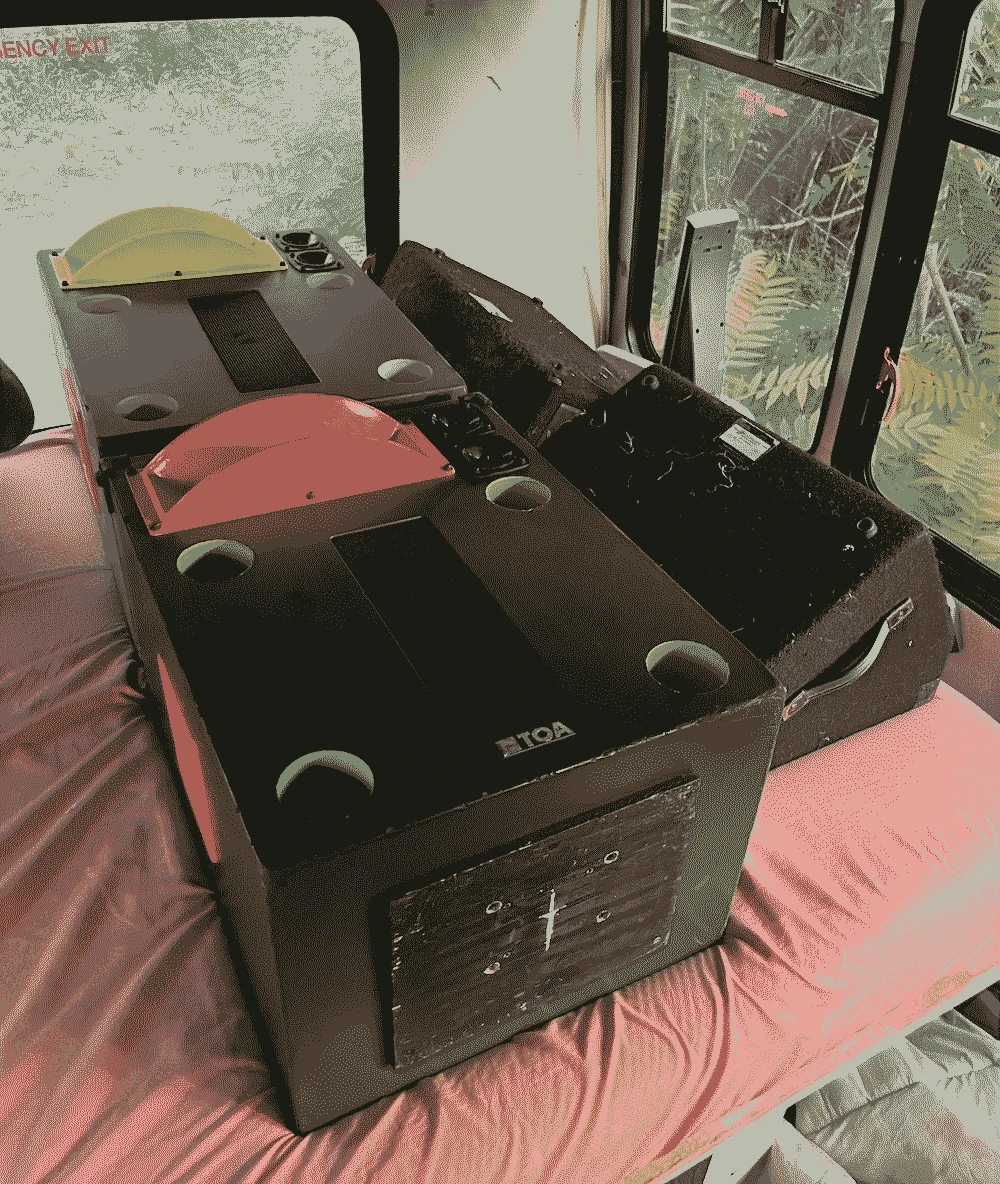 In boston yesterday I played a show outside, deep in a park near a strip mall organized by Barbie and Tobias, with their awesome TOA 38-sd speakers and Eminance subs. Sounded great, I'm really in love with these speakers and how colorful they are, in paint and sound. I started painting some of my speakers fun colors. We used my peavy speakers as the booth monitors which sounded pretty good! The party went from 8pm to 5am.