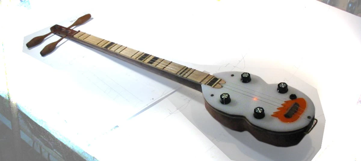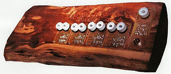 Peter Blasser, the blowing bear, 1999.Hand drawn circuits installed on oak driftwood from Lake Erie.