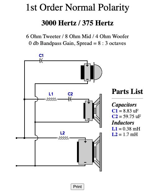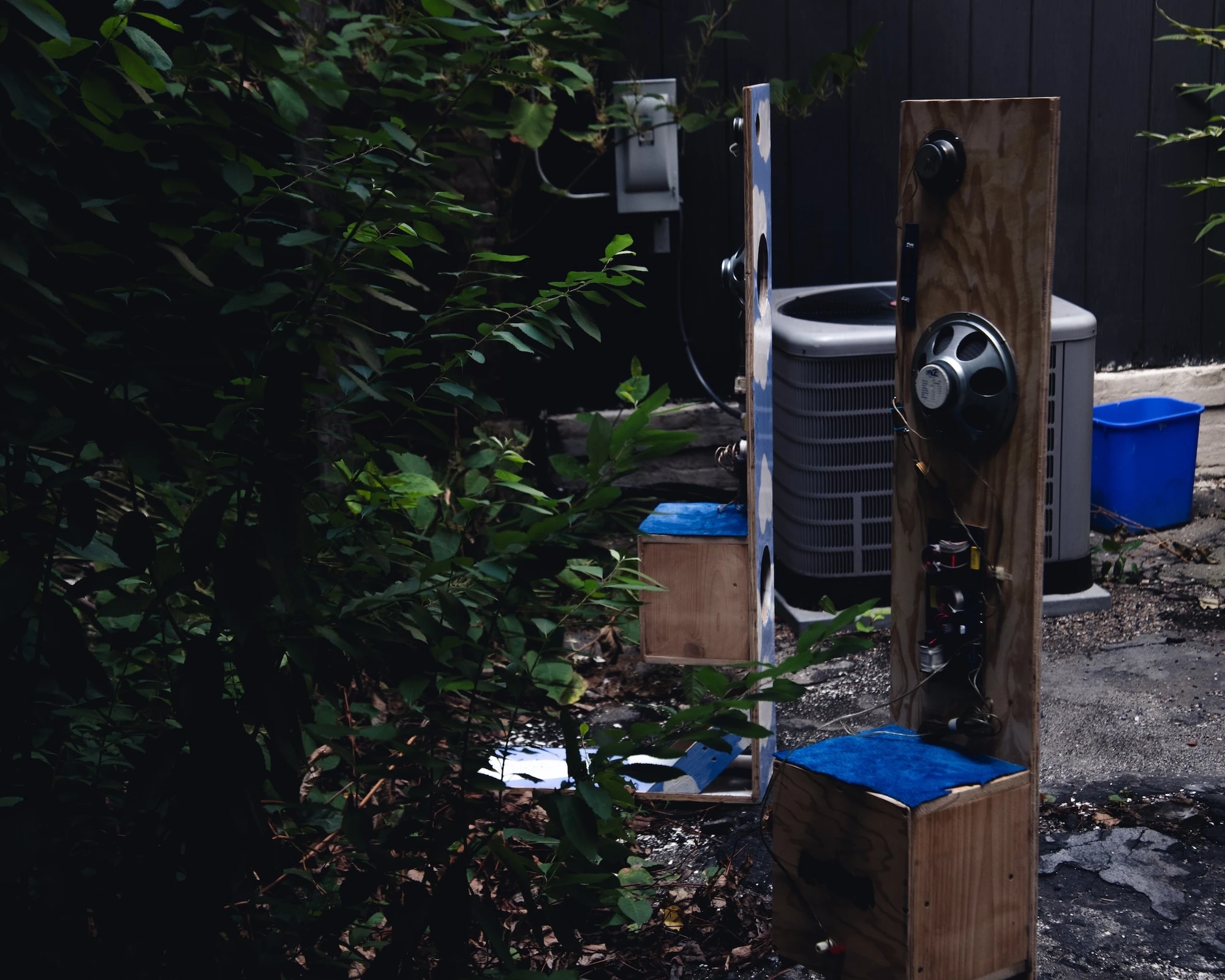 The cloud speakers are done! This was a wild learning experience. I was super excited when the crossover came in to set it up. I did a lot of testing at 4ohms with the crossover around 290 for the bass and 2400 for the mid to tweeter, and at 8 ohms with the crossover for the bass around 300 and the tops around 3400. I decided to stick with running the speakers at 4 ohms. One of the immediate things i noticed was that there wasn't enough bass at all. This could be because the bass drivers I was using were 4 ohm, and the mid ones were 8 ohms and covering a wider range, but also because the mid drivers were open back and the subs were enclosed, so you're getting twice as loud of a sound coming out of the mid range drivers. I added two power resistors, whatever I had lying around in the studio to the back of the mid range drivers to make them about 10db quieter which helped but they still feel loud and I don't think ill get much out of these cheap 10in bass drivers, so I'm leaving it where it is for now, and maybe ill add another resistor in series to the back if its too mid heavy. That said, there is a lot of clarity in those mids, not so much in the highs, I wish i had used compression drivers or added a piezo or super tweeter to get up to 20khz, but this is the gonzo build. It just needed to happen and now its done. They sound great! I have a lot of ear fatigue from lots of listening so I'm going to take a break from them, listen to them in new spaces and ask for peoples opinions on ho they sound so I don't feel crazy.