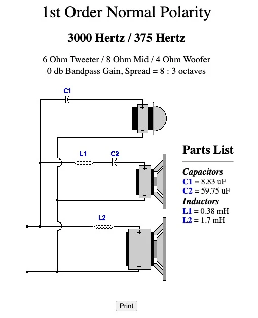 The cloud speakers are almost complete! Today I ordered the crossover. When me and Matt did a sweep on the low, mid and high frequency drivers, we found that the mid range drivers roll off around 2400 hz. When doing the crossover manually with my modular synth I found it works well for the woofer driver around 300hz. I didn't really want to design the crossover from scratch so i went looking for one for similar specs for cheap, but could only find one with a crossover of 300hz and 3000hz. This means most likely there will be a drop between 2400/2800 hz and 3000hz, that im hoping isn't too drastic. I think it also rolls off on the bottom end around 100hz, which isnt ideal but its what i got for these. Tested them all today with separate amplifies and no crossover and it sounds pretty good! Wont know how flat it is until doing another full sweep after the crossover is wired up. The crossover I'm using is a cheaper copy of the Dayton audio XO3W-375/3K 3-Way Crossover. The one I'm using is the Audiopipe CRX-3003K. I have a feeling the super high frequencies are not really there yet too, maybe I will have to add some sort of super tweeter or piezo tweeter at the top, maybe with some simple tractrix horn. And the crossover matches the speakers in blue!