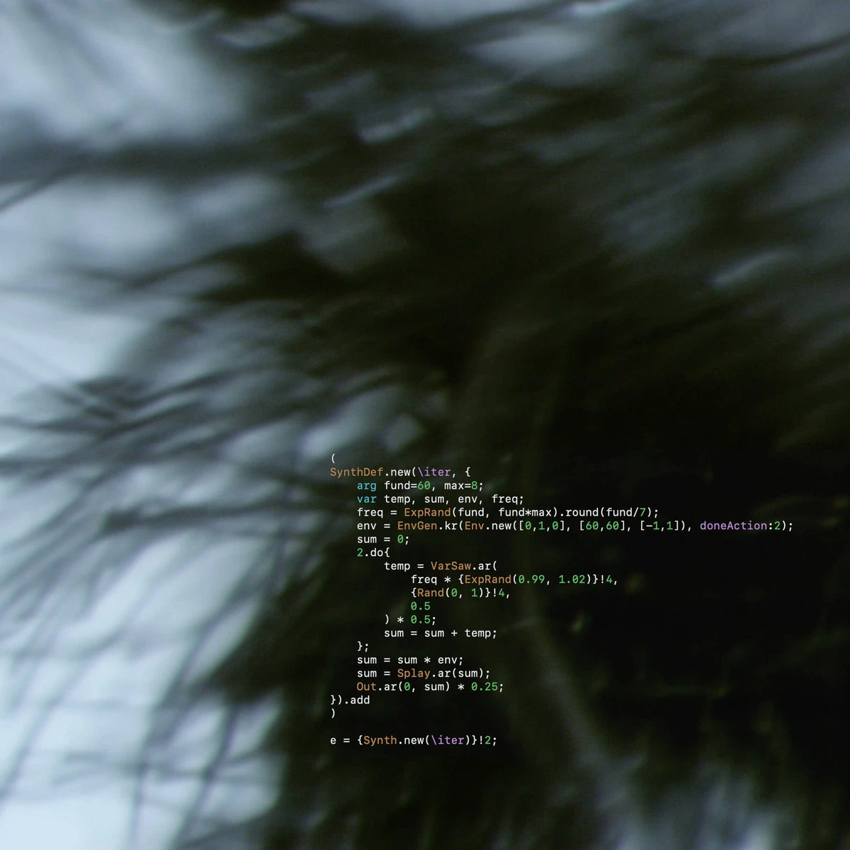 This album is a collection of works from my Sound Synthesis class, using Supercollider and the Serge modular synthesizer.