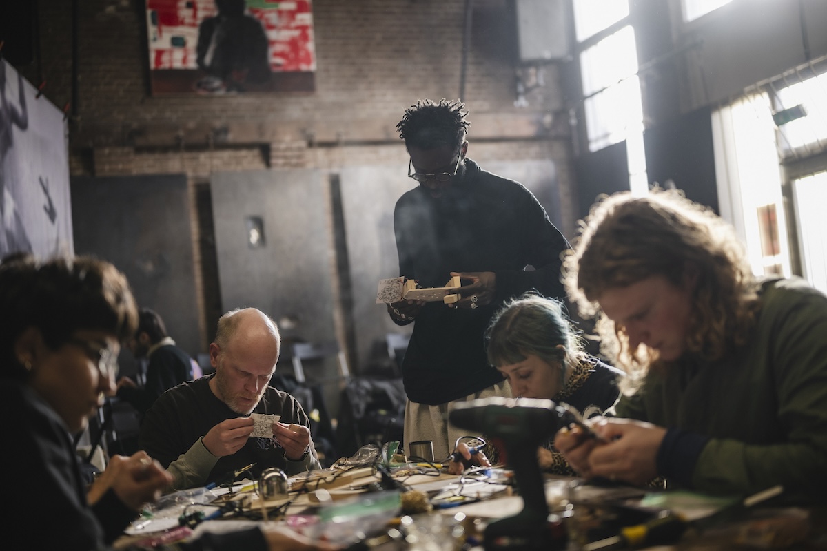 Femi is a Providence, RI–based architect and sound artist from New York working with handmade electronic and acoustic instruments to examine the cybernetics of gender, race, and culture through site-specific ritual performance. His work explores the intersections of acousmatics and cultural anthropology through architectural design as a radical and experimental practice. He is particularly interested in generative systems, spatial audio, sonic acts as ritual, and the poetics of sound technology. Femi approaches architecture as a political intervention enacted through vibration, embodied experience, and spatial interaction. Since 2018, he has performed solo and collaboratively under the moniker “sadnoise.” Notable performances include the Sonic Acts Biennial (2026, NL), Waterworks Festival (2024, MA), and Ende Tymes (2022, NY), among others.