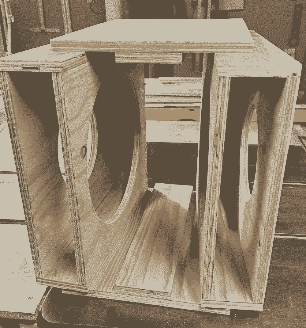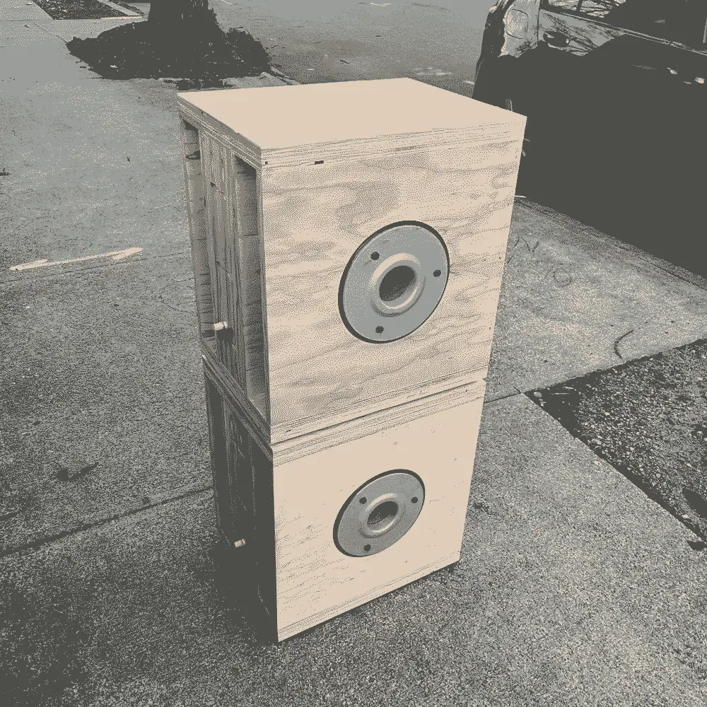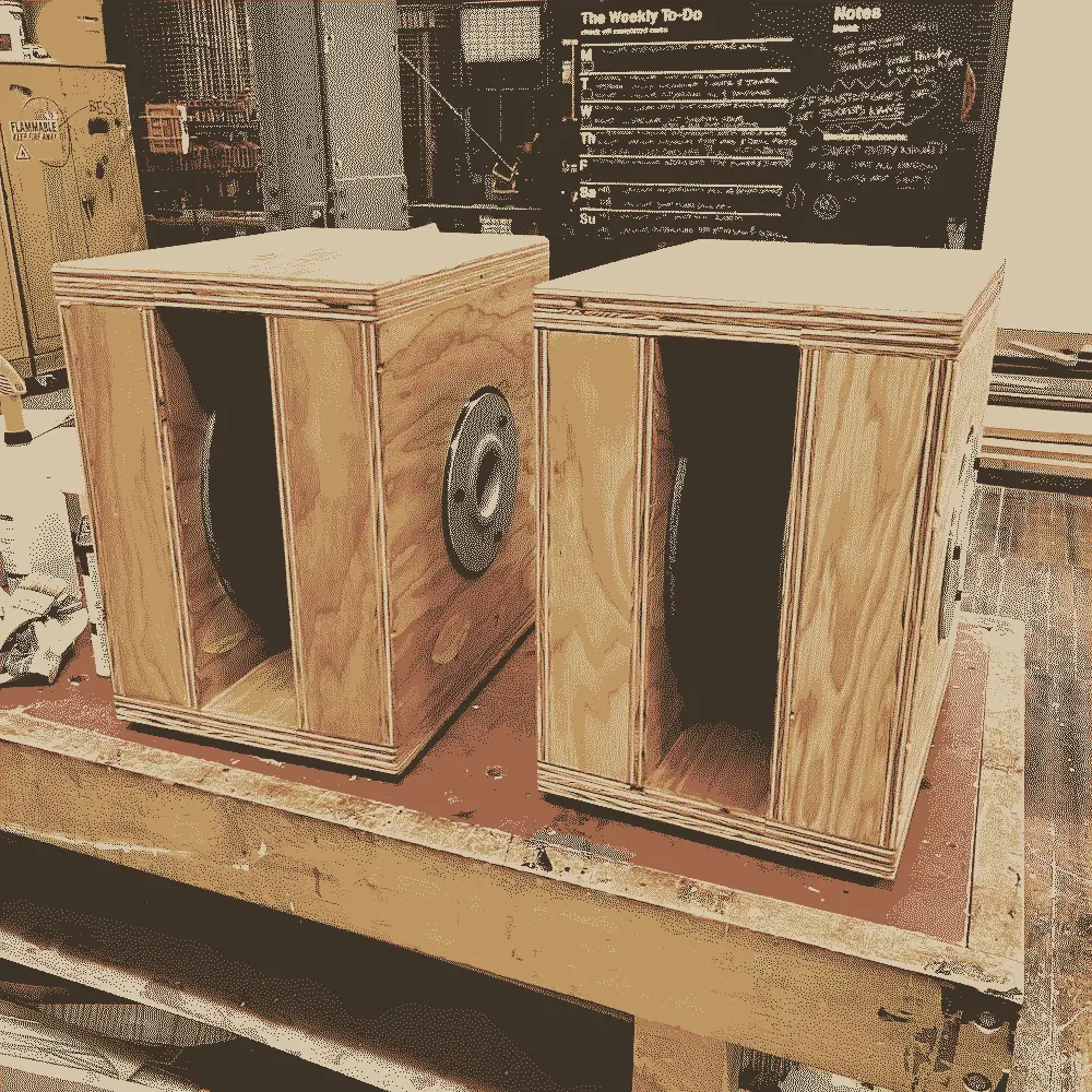 The Ripole subs me and Jackson are making with the old black widow 15in peavy drivers I harvested from a (much bigger and heavier) PA are coming along! Cant wait to do a sweep of these, hope they go down to at least 40hz, it's a waste of time if they dont go under 100hz.