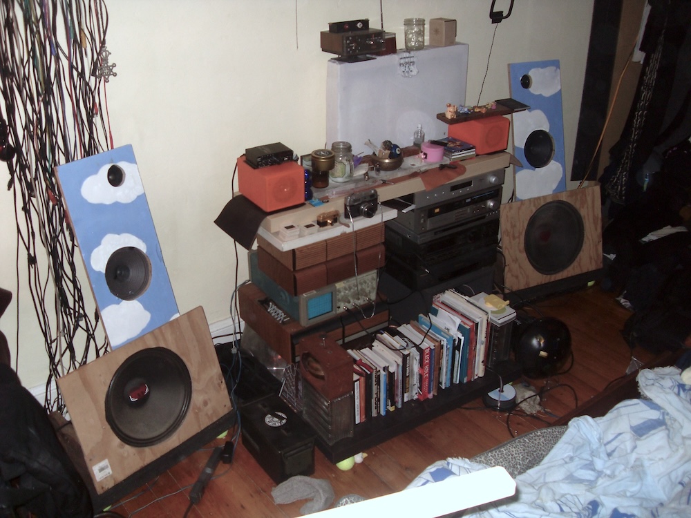 Right now I'm building these hifi open baffle hybrid speakers from sub drivers that Hoolihan dropped off at the studio, mid range Page drivers that were used at PA speakers in the ceilings at my studio probably in the offices that occupied the space in the 90s and early 2000s, and tweeters Eli harvested from some studio monitors. This is my first HiFi Build and I'm doing it right, trying to build a nice crossover and everything, I was quad amping it for a while, using my modular to make crossover filters before the amp. The page drivers are open baffle and the BASS (bad ass serious sub) drivers are in a closed box, with no port. Matt Azevedo is helping me do the calculations, I need a windows computer to run Hornresp and RoomEQWizard. And i need to order some more parts for the crossover, but I've harvested some power caps and inductors from old speaker cabinets in the basement of the Firehouse. I'm learning a lot about crossover design and speaker impedance. The page drivers had transformers on the back of them that made me think that they would be a super high impedance but they ended up just being 8ohms. I have been looking at a lot of Japan HiFi Audio listening rooms with crazy compression drivers for the whole system, connected to these insane sculptural horns that spiral the house into the attic to make the length of the horn for bass response and I want to build something like that for my architecture thesis.