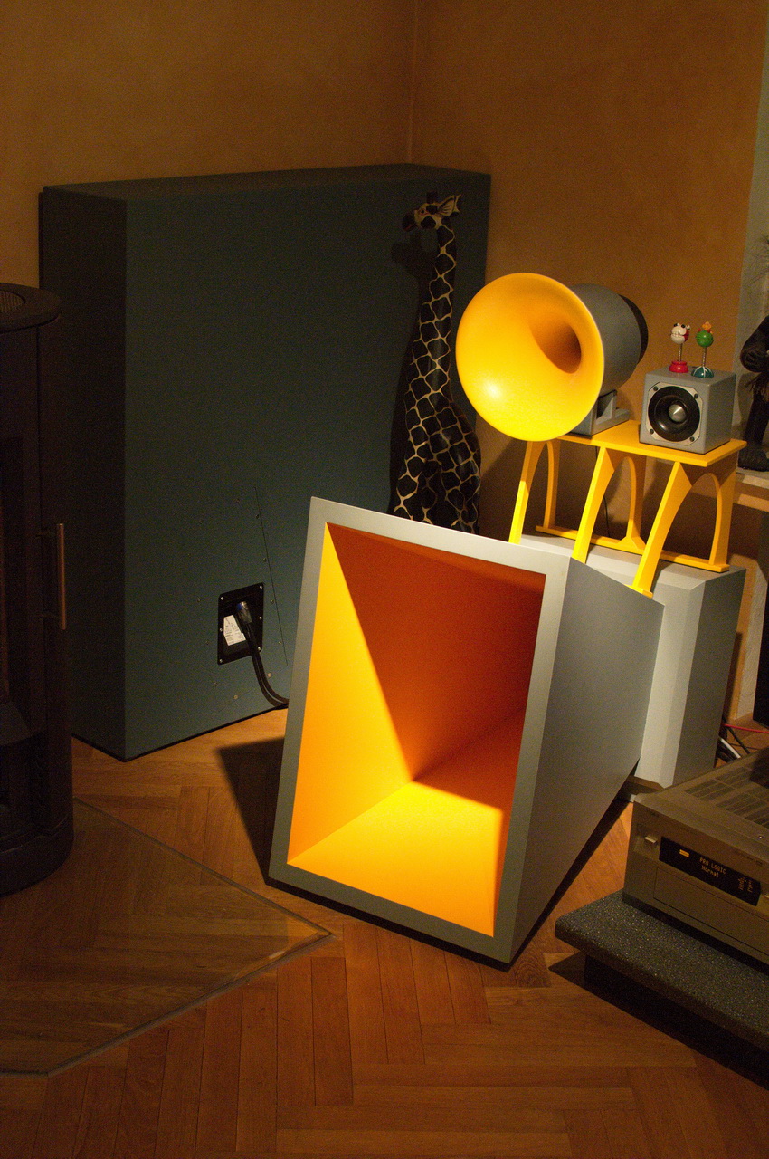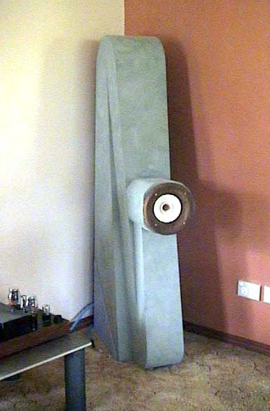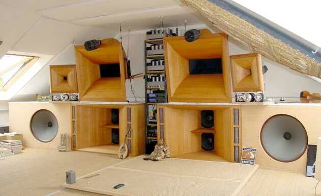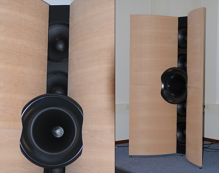 Looking for a pairing for my ripole subwoofers, I've been really inspired recently by these coaxial open baffle tractrix/JMLC horns. They are open on the back and the midrange/bass drivers are horn loaded in some exponential way. They’re are mechanically time aligned to the compression driver thats attached to the back with the other drivers and protrudes into the vertical horns. These below are inspired by the BD (Bert Doppenberg) Designs Orelo and Klangfilm speaker. 6moons